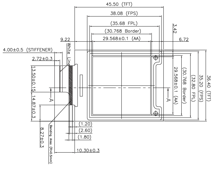 45.5 (W) × 36.4 (H) × 0.85 (D) mm