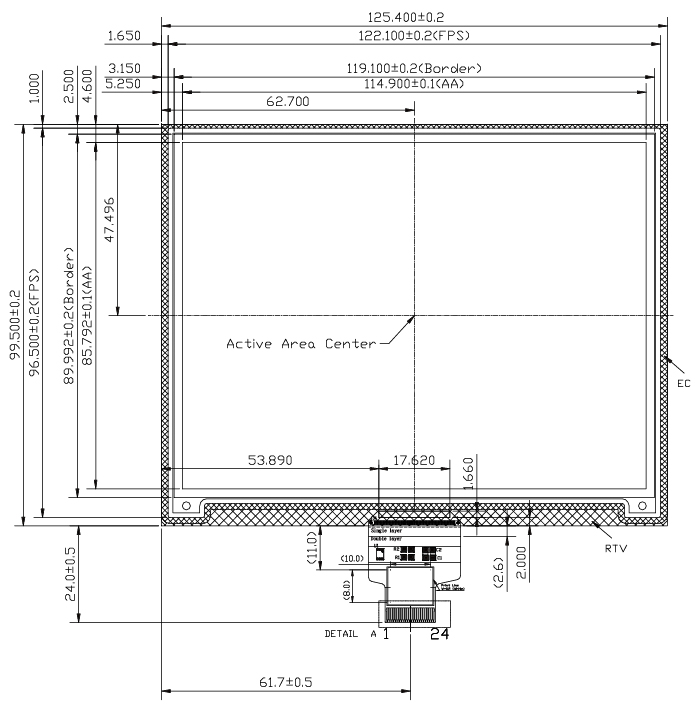 5.65˝ Aurora™ ePaper Display (VC2207-EGA) is a reflective electrophoretic E Ink technology display module on an active matrix TFT substrate. The diagonal length of the active area is 5.65” and contains 600 x 448 pixels. The panel is capable of displaying 1-bit black/white images depending on the associated lookup table used. The circuitry on the panel includes an integrated gate and source driver, timing controller, oscillator, DC-DC boost circuit, and memory to store the frame buffer and lookup tables, and additional circuitry to control VCOM and BORDER settings.