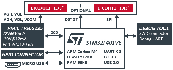 The SILK development kit enables you to develop high-performance applications that benefit from low-power operation. It features the easy installation and easy tryout on applications desired. You can use development kit loading and viewing custom images on E Ink display.