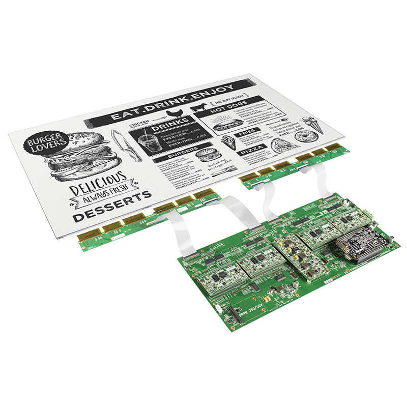 Salt Driving Board allows E Ink clients to access the hardware and software of E Ink’s 31.2” and 42” ePaper display module for evaluation. This kit demonstrates as a turnkey solution for those who are interested in designing with E Ink displays. Hardware and software design support is available from E Ink directly.